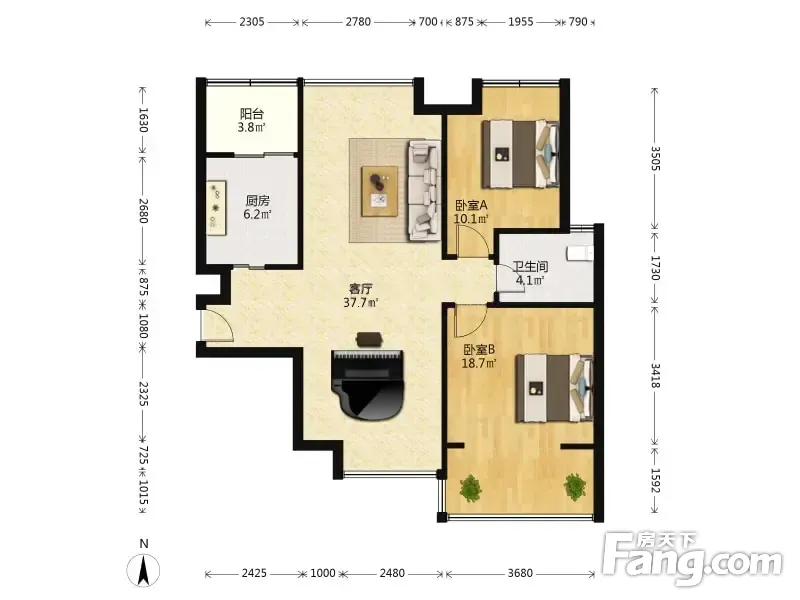 户型齐全,主打户型方正,明卫,客厅朝南,双阳台二居