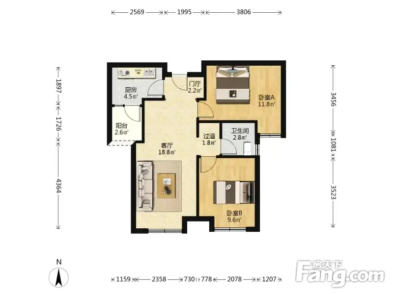 户型齐全,主打明卫,客厅朝南,双卧朝南,主卧朝南二居