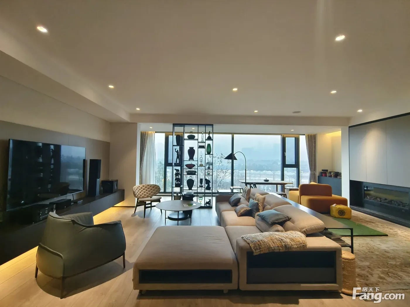 核心卖点 1.房源为开发商精装修,带空调、地暖和新风, 2.目前做的四房设计,三个套房; 3.正朝南,三面看江,视野无遮挡: 4.是目前在售此面积段,的一套,,