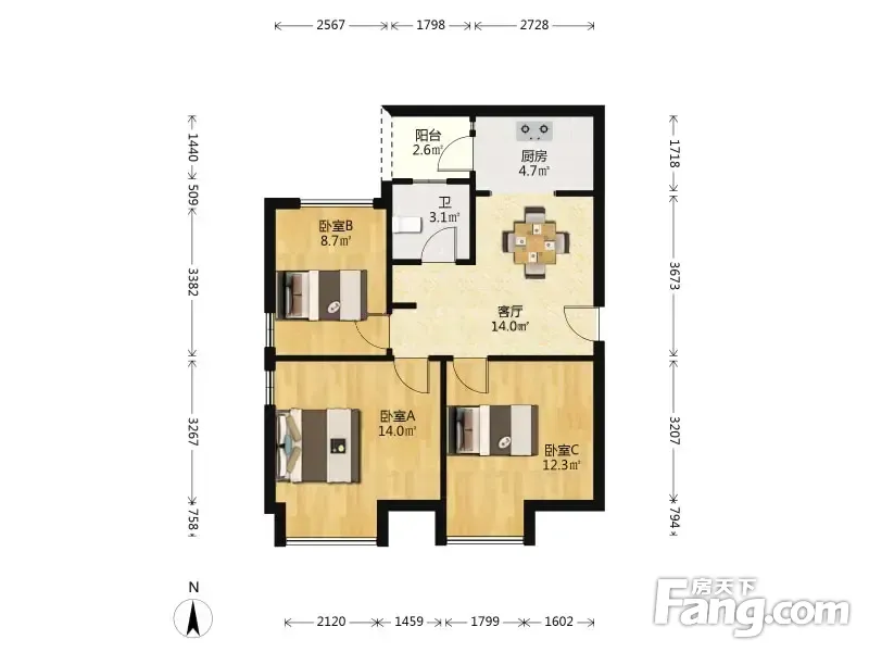 户型齐全,主打明卫,双卧朝南三居