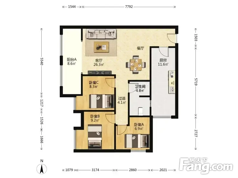 3室2厅1卫