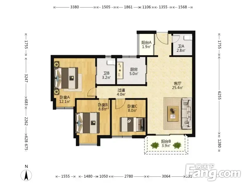 3室1厅2卫
