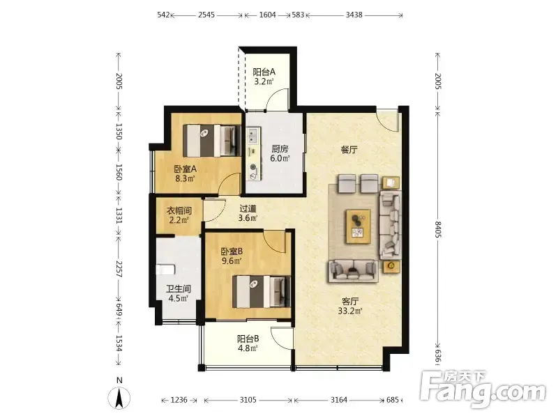 户型齐全,主打户型方正,独立衣帽间,明卫,明厨,客厅朝南,双阳台,主卧朝南三居