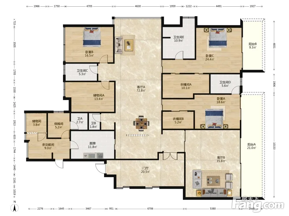 户型齐全,主打明卫,独立衣帽间五居