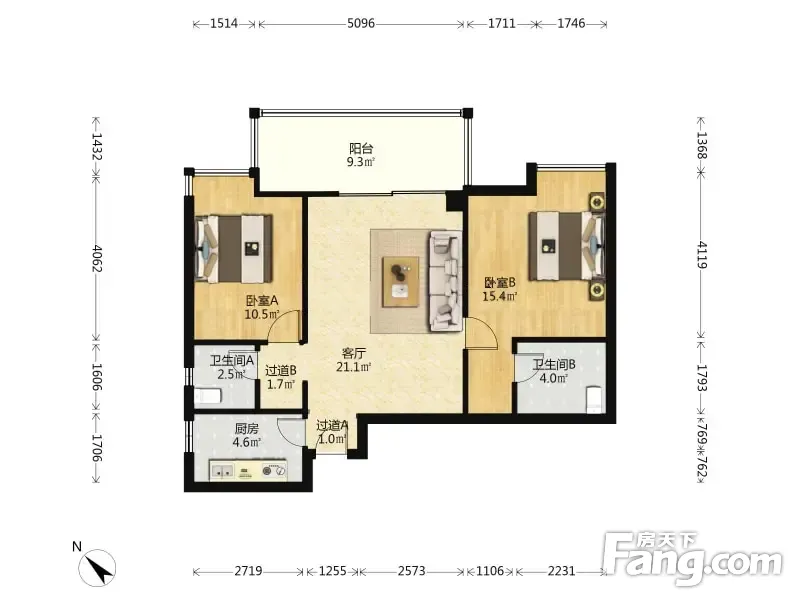 2室1厅2卫