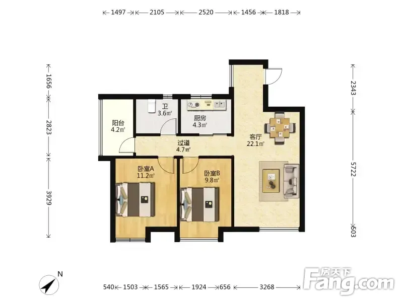 户型齐全,主打户型方正,明卫,明厨,客厅朝南,全明格局二居