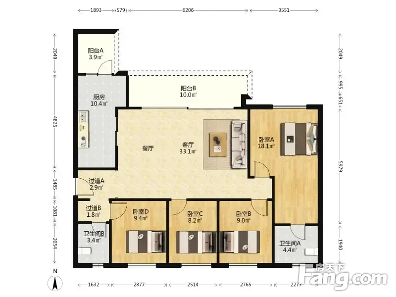 户型齐全,主打动静分离,主卧带卫三居