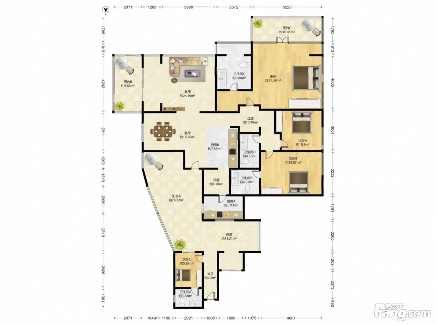 户型齐全,主打入户花园,露台四居