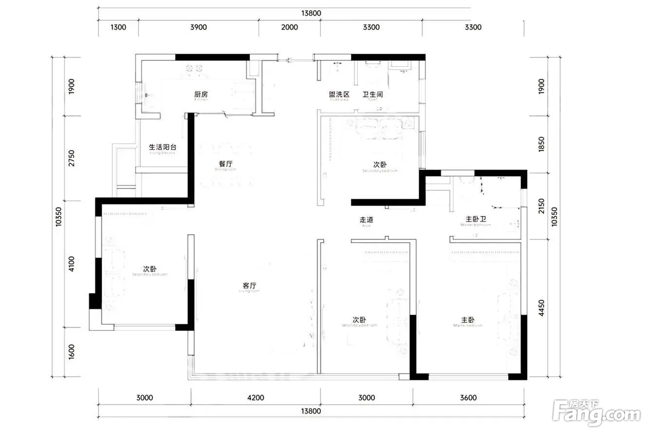户型齐全,主打南北通透,主卧套间,大面宽阳台四居