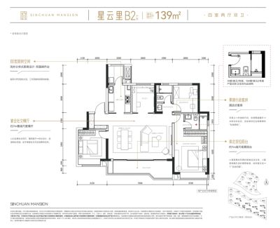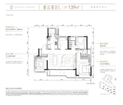 中海新川华府户型主要有139平-143平的户型方正,动静分离的四居 、117平-132平的户型方正,动静分离的三居 。