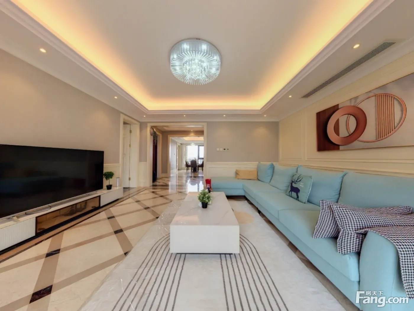 此房开发商为中国铁建,本项目为围合式布局,总共13栋,由1栋小高层和12栋高层组成的围合式布局,每栋定制双层精装入户大堂;本项目为精装物业,精装用材国际一线品牌,中庭为欧式园林,配有休闲运动场所,每天24保安巡逻。