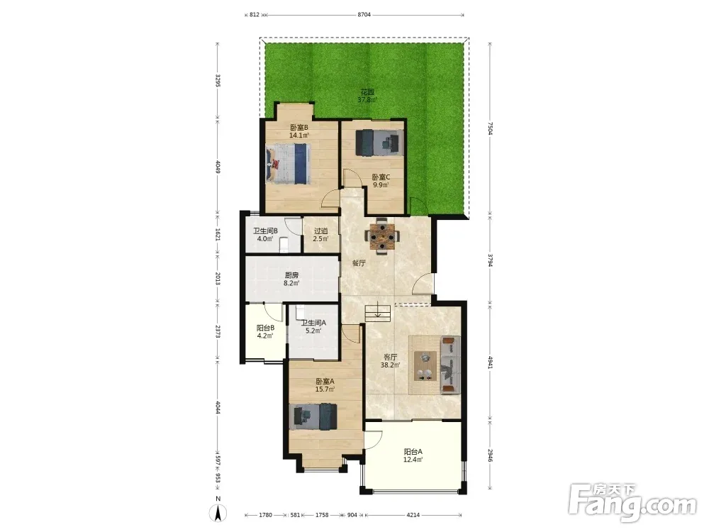 内金沙金沙园二期 带前后花园 赠送面积多 户型方正