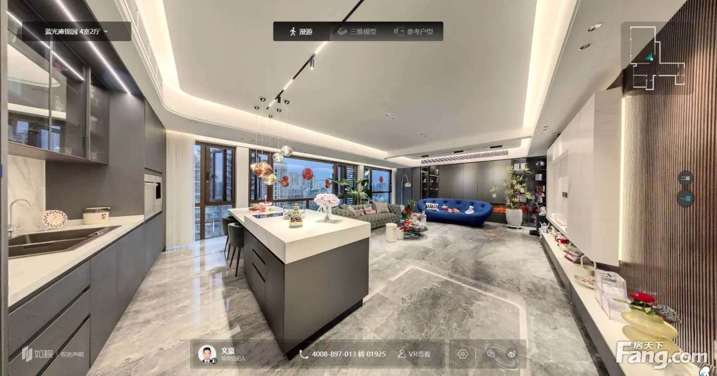 蓝光雍锦园 豪华装修内跃 带车位 负公摊 俯视公园 满2年