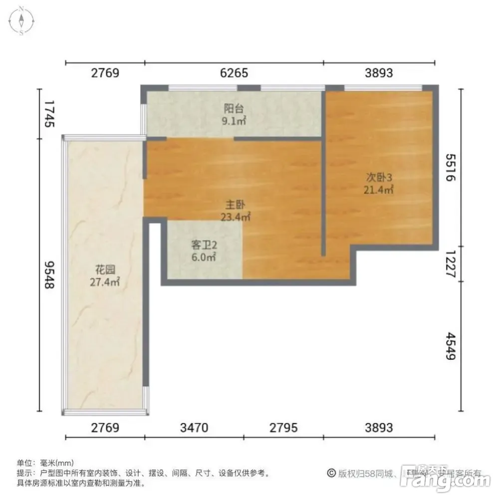 特殊户型送花园!多25平房间!实得200!一梯一户!方便看