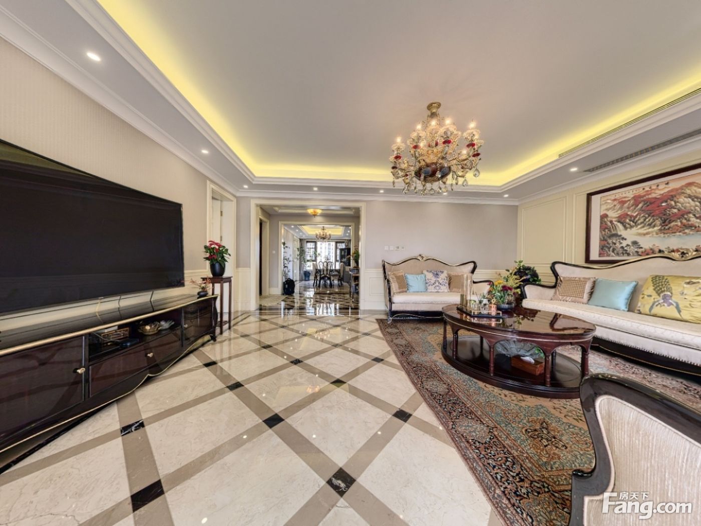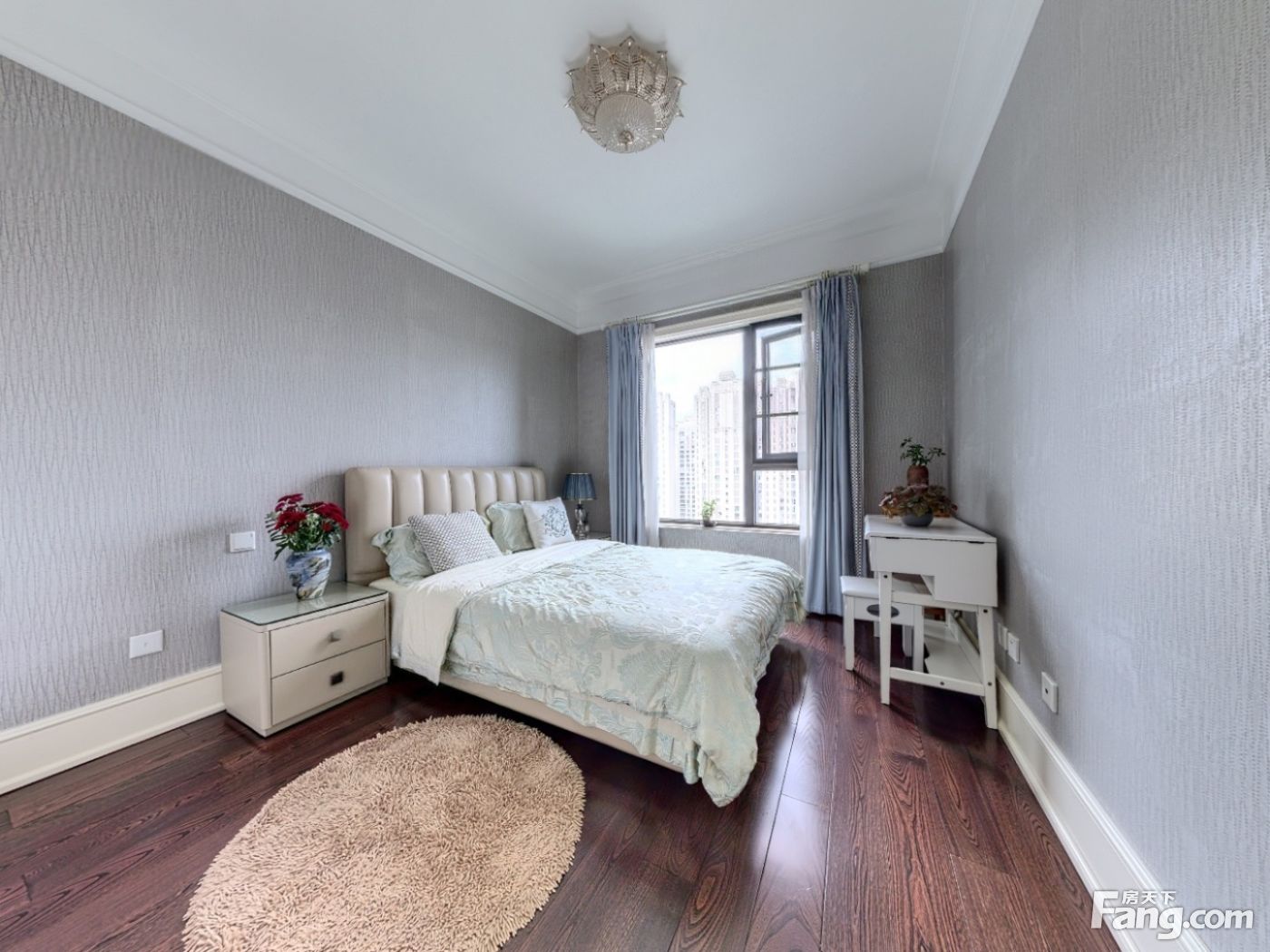 此房两梯两户,电梯独立入户,刷卡指纹入户,坐北朝南通透户型,做到了三面采光,动静分区,双主卧设计。大方厅带餐厅。