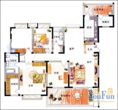 户型齐全,主打明卫,独立衣帽间,客厅朝南,双阳台,主卧朝南四居