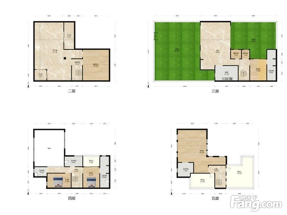 中粮合院别墅【客厅挑高6米,带双花园150平】上下5层楼