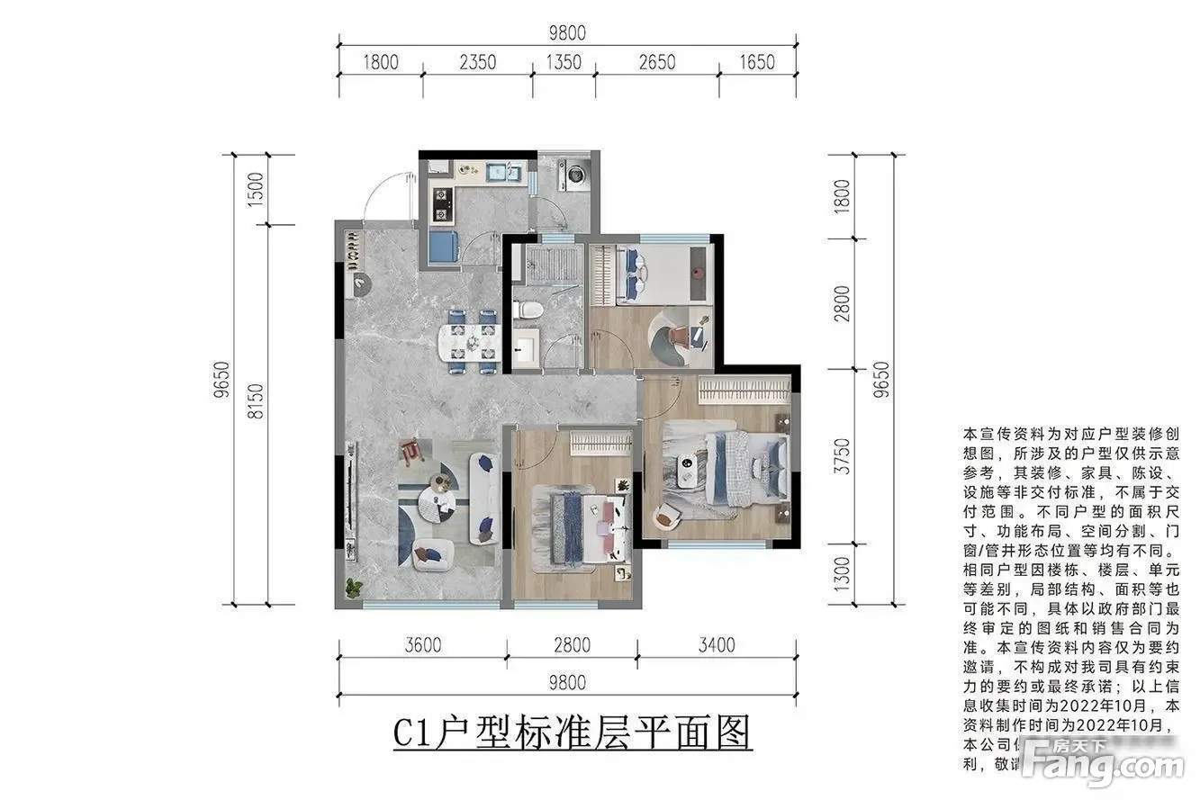 户型齐全,主打户型方正,动静分离三居