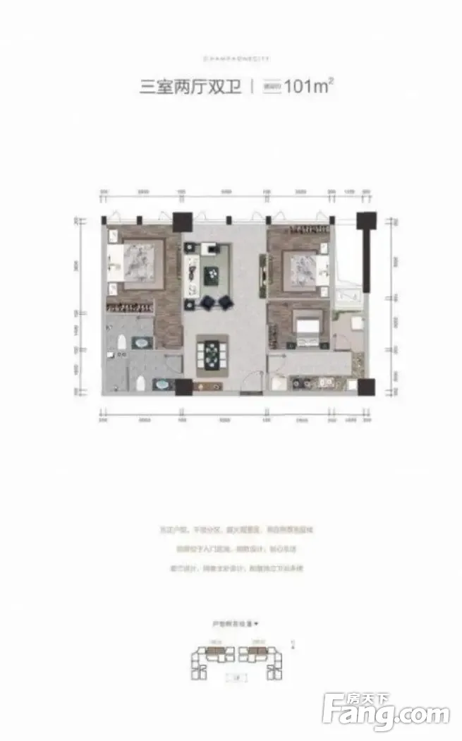 户型齐全,主打全明格局,户型方正三居