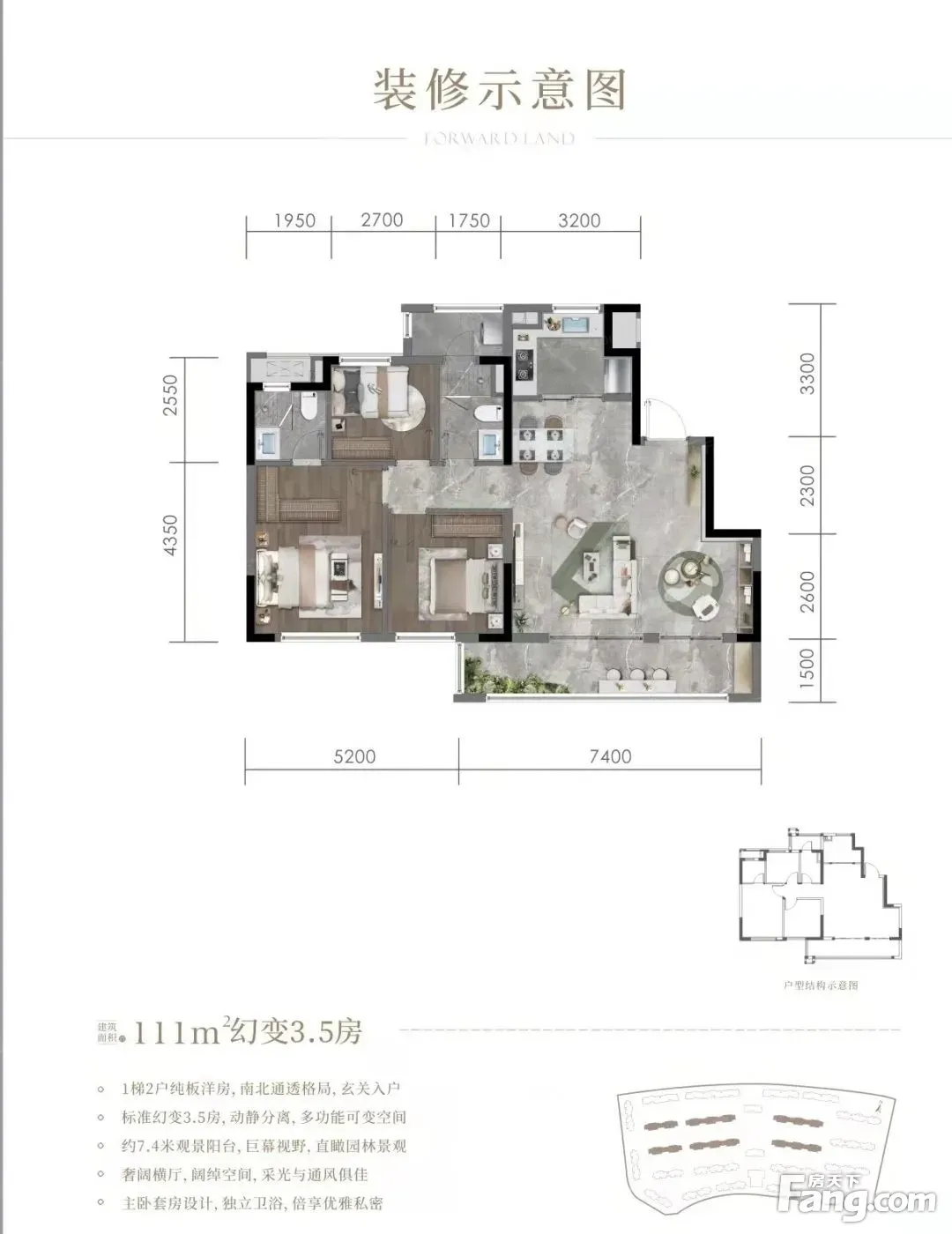 中旅·启境户型主要有100平-111平的南北通透,主卧套间,卧室带阳台,L型厨房的三居 。