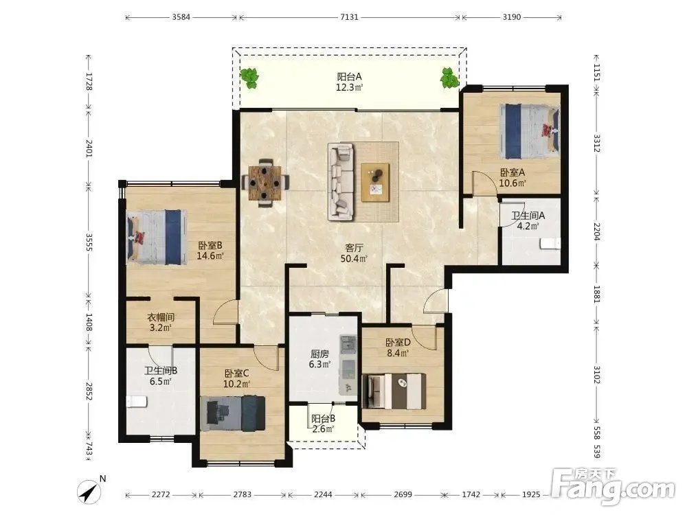 户型齐全,主打户型方正,主卧带卫四居