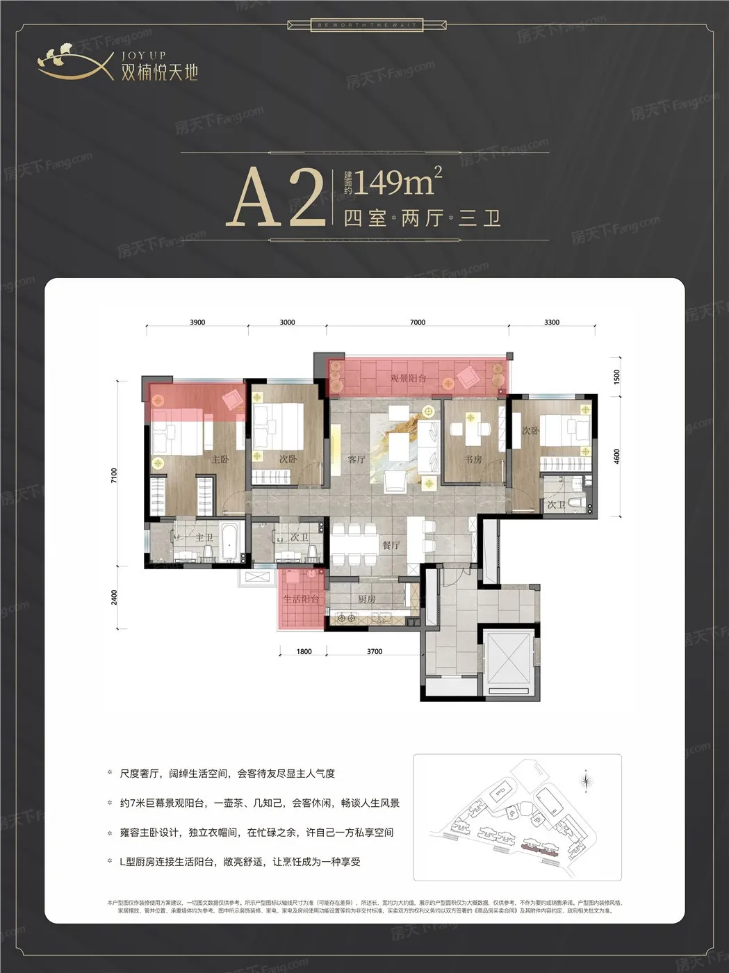 双楠悦天地户型主要有112平-138平的全明格局,户型方正的三居 、149平-171平的全明格局,户型方正的四居 。