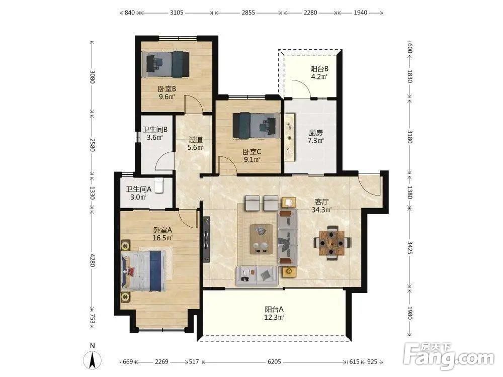 3室1厅2卫