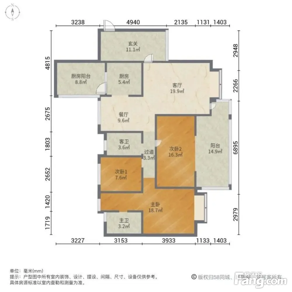 户型齐全,主打明卫,客厅朝南,主卧朝南三居