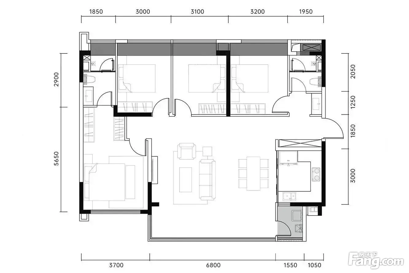 户型齐全,主打南北通透,主卧套间,大面宽阳台四居