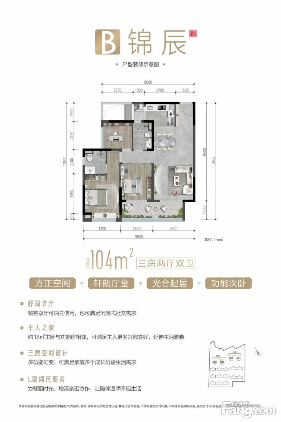 锦御东府 104平3居 南北向简装修 拎包入住