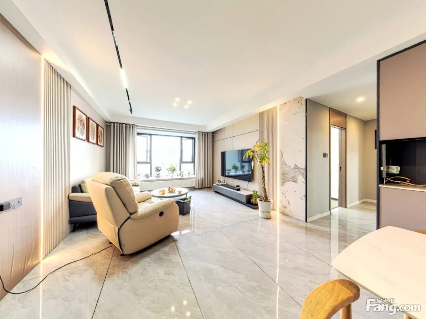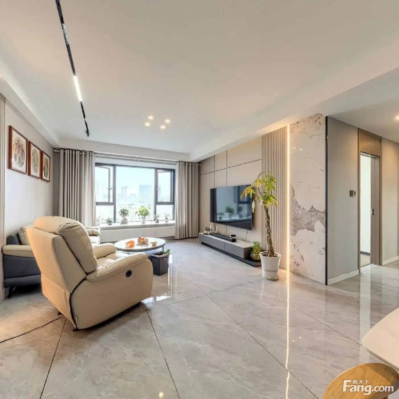 客厅带阳台,卧室带飘窗,卫生间有窗,直接采光。户型方正,格局好。