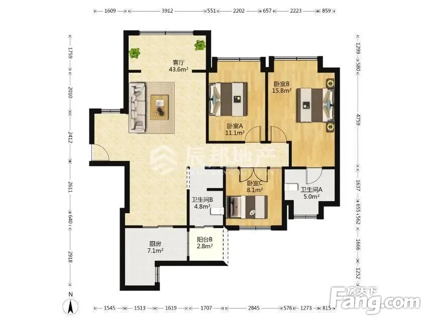 户型齐全,主打明卫,双阳台三居