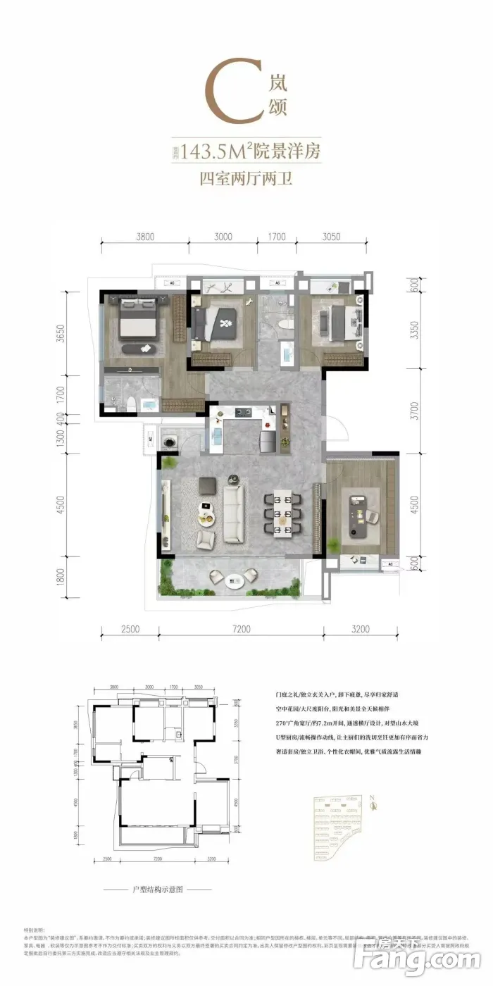 户型齐全,主打南北通透,全明格局,采光充足四居