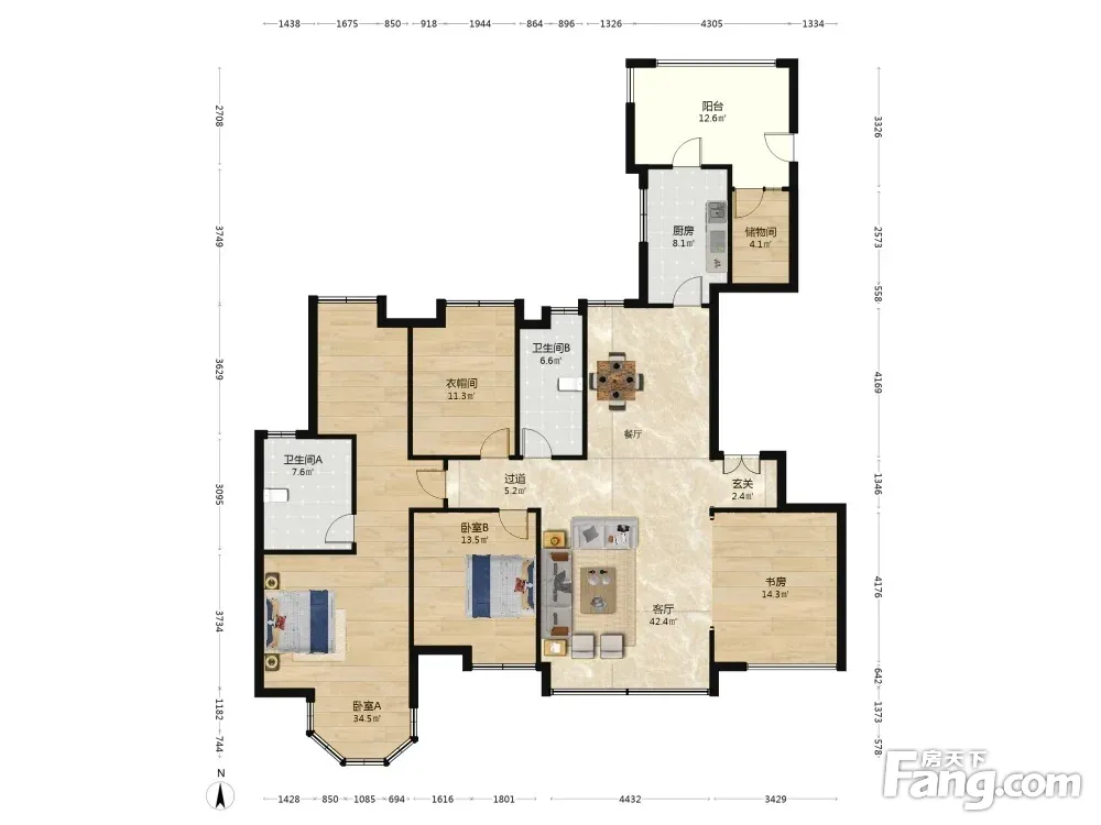 户型齐全,主打独立衣帽间,明卫,明厨,客厅朝南,全明格局四居