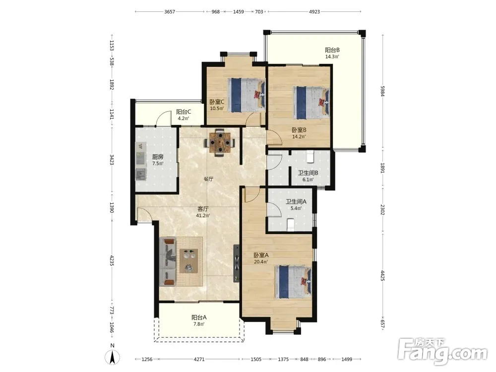 户型齐全,主打明卫,双阳台三居