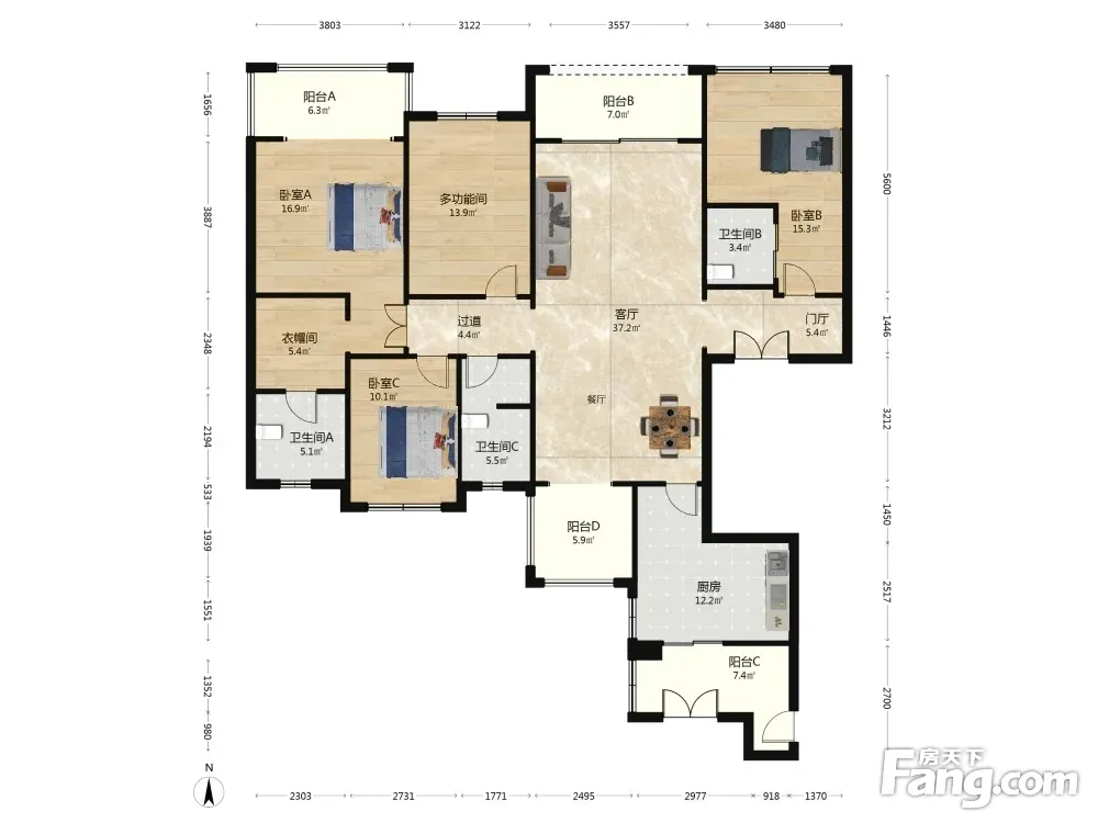 户型齐全,主打明卫,明厨,独立衣帽间,客厅朝南,全明格局四居