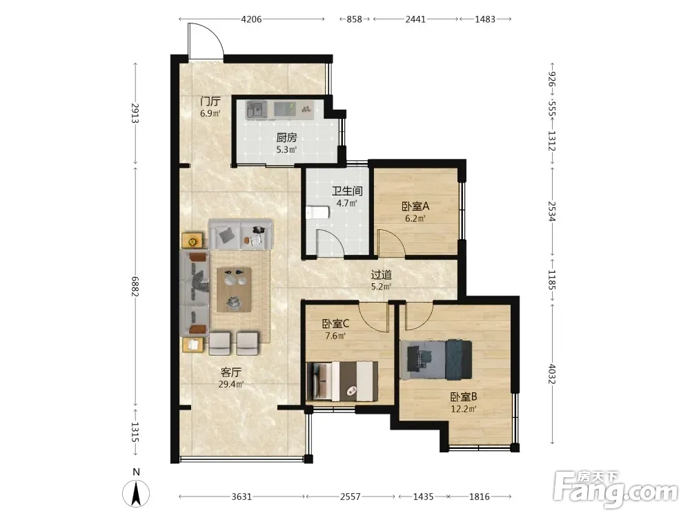 全成都二手房都有—只收2000中介费—隆鑫九熙 3室1厅 南