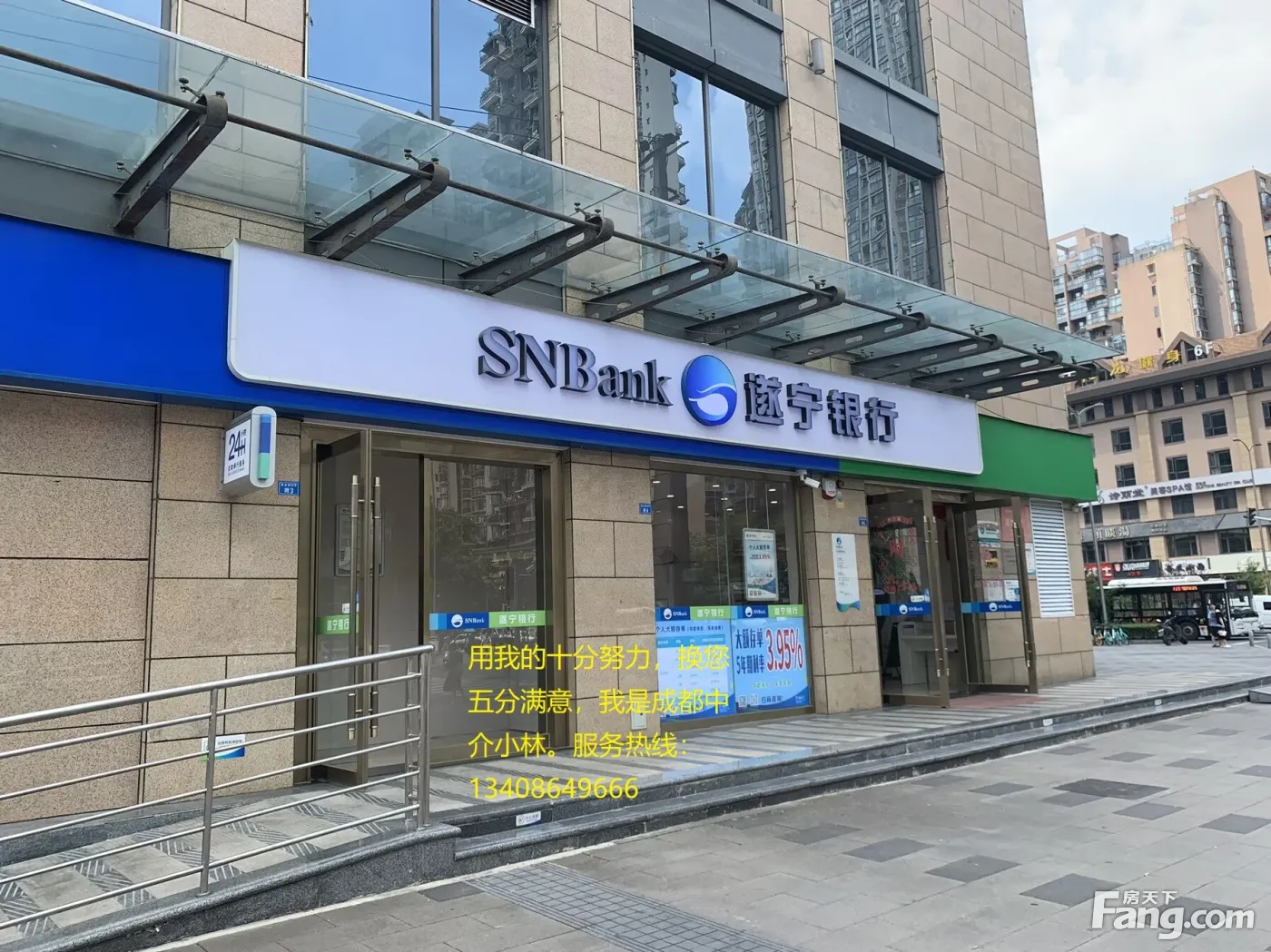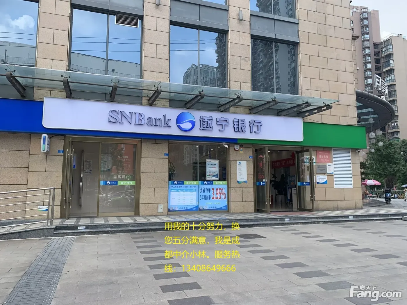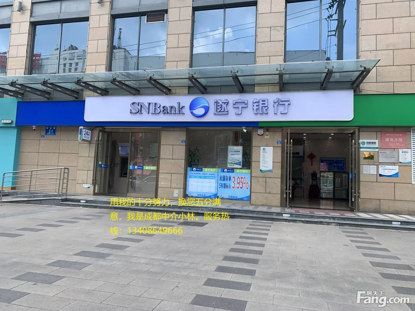 中国·成都丨专注商业地产丨 只为专业 ——————————————— 【商铺商家】 遂宁银行 【商铺面积】 82.66平米 【商铺售价】 252万 【商铺租金】 20万 【商铺产权】双证齐全,产权清晰,无抵押,即买即网签 ——————————————— 【房源优势介绍】 —— 临街成熟地段,消费集中,人气高,消费稳定。 —— 房东亲自委托、挂牌急售、低于市场价30万急售、可立即过户。 —— 房源真实可靠、商铺照片均是现场实拍、诚信买铺的客户、请电话联系! —— 周边数10个小区,旁边就是地铁口,日均流量30万人。商铺位置优越,顾客必看,展示信极强!业态优势性明显!户型方正、大开间、展示面大、公摊小、利用率高带外摆!!