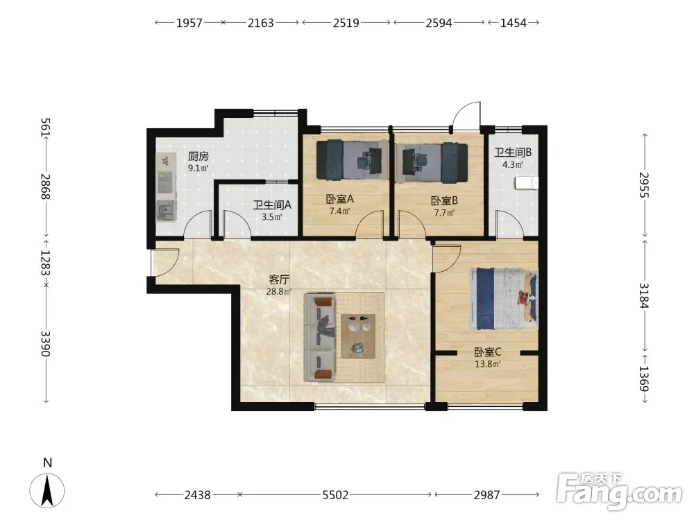 3室1厅2卫