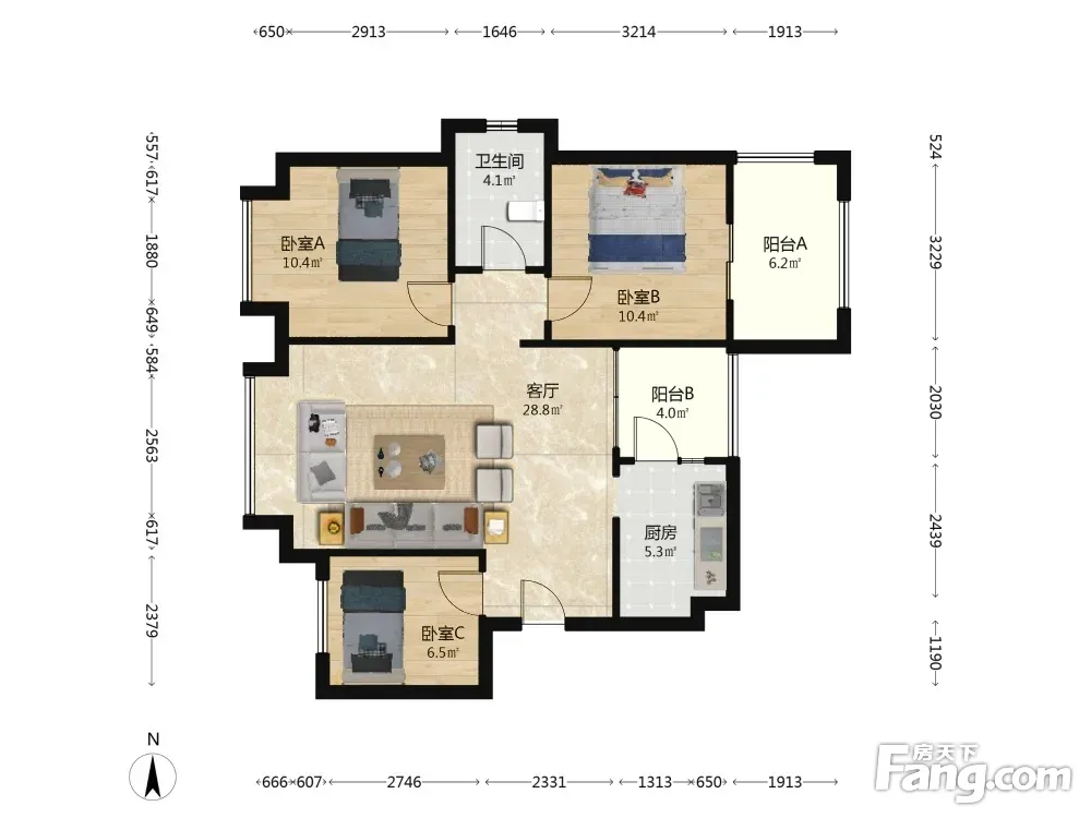 户型齐全,主打明卫,客厅朝南,主卧朝南三居