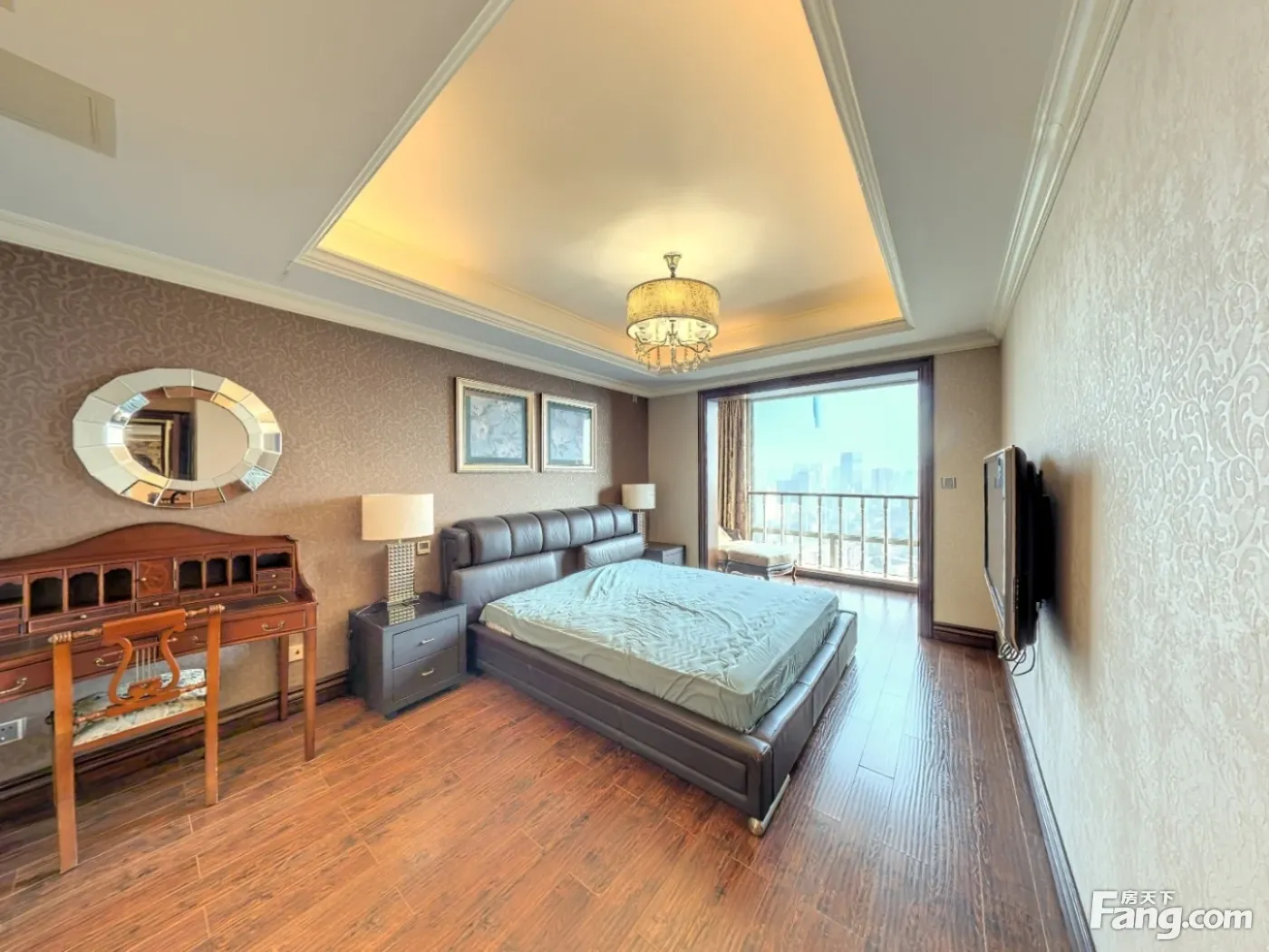 此房是标准套三双卫,客厅和卧室都朝南看河,客厅和主卧带阳台,视野开阔,采光好