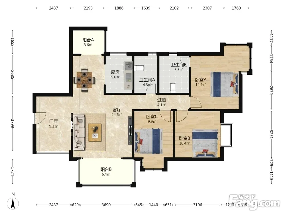 3室1厅2卫