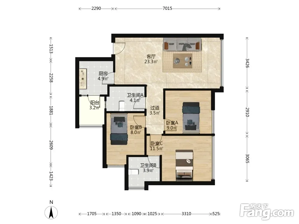 3室1厅2卫
