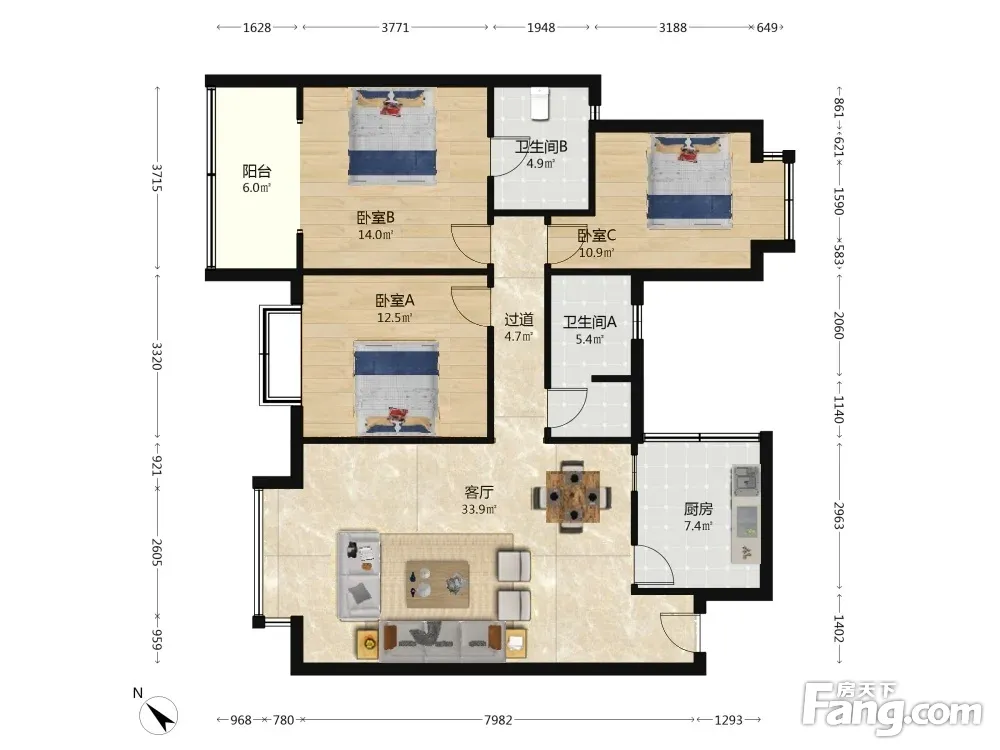 3室1厅2卫