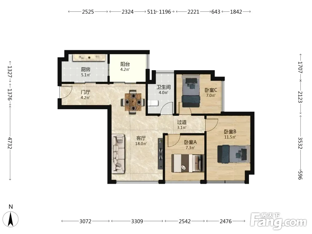 3室1厅1卫