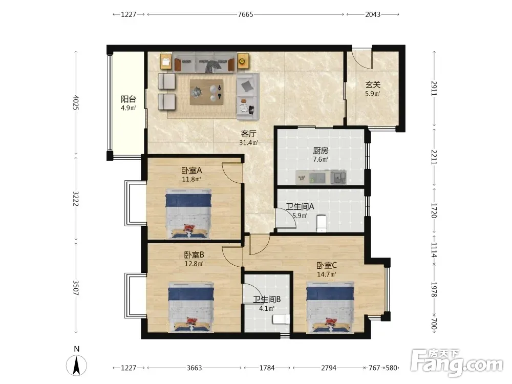 3室1厅2卫