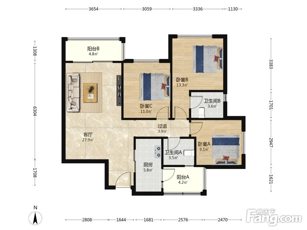 3室1厅2卫