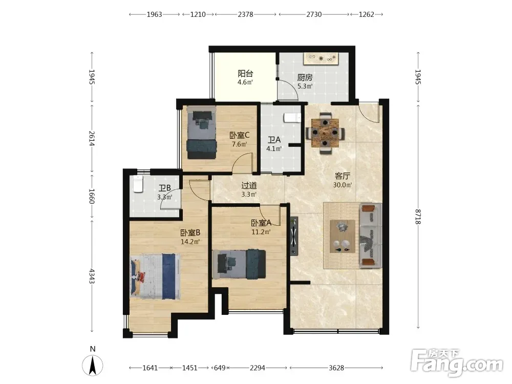 3室1厅2卫