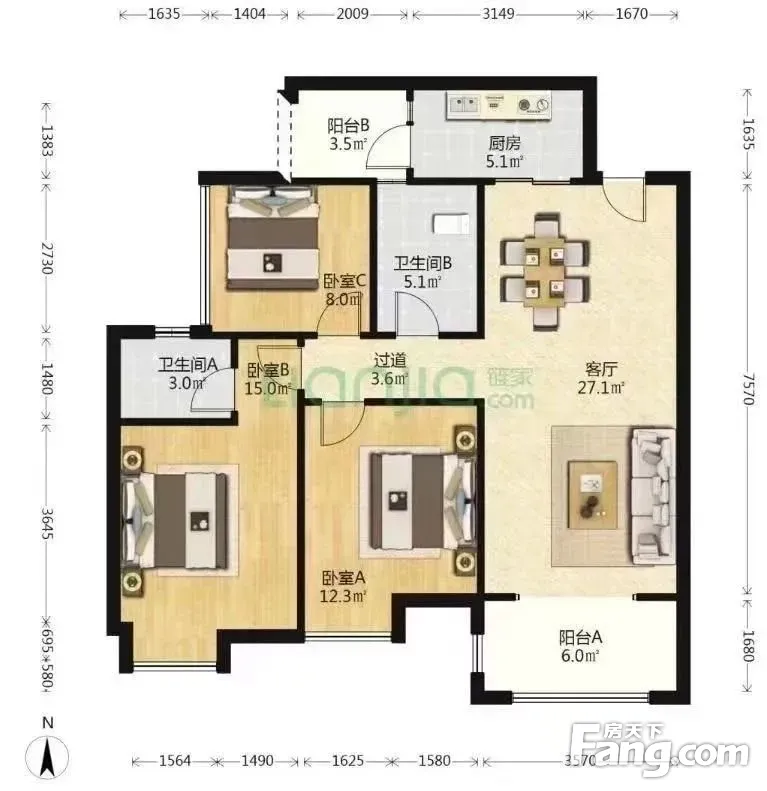 户型齐全,主打南北通透,户型方正三居