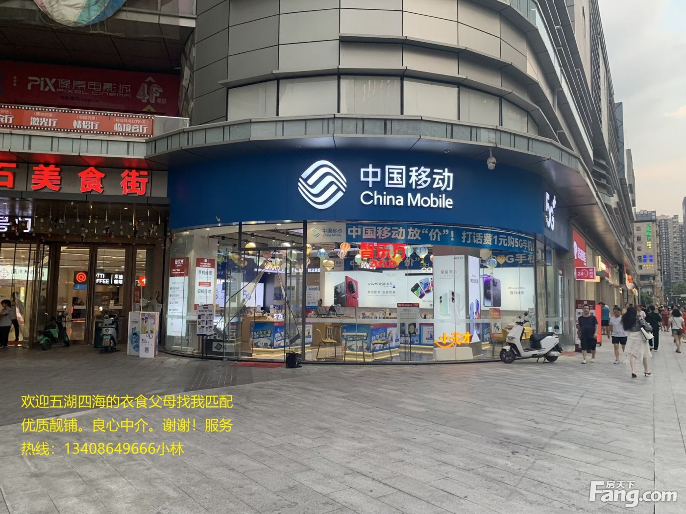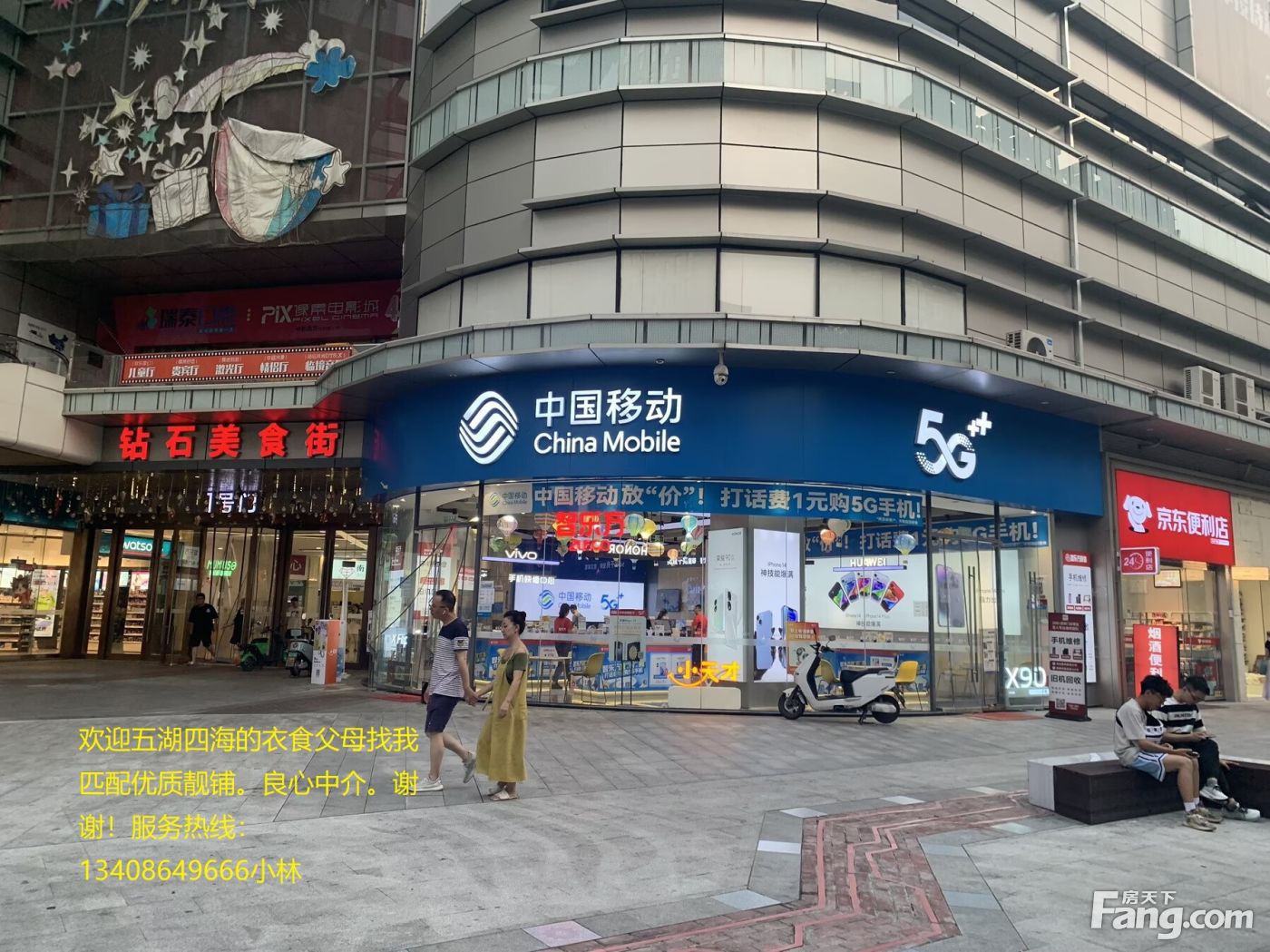 房东诚售急售!抄底建设路钻石广场转角铺《中国移动》年租20万
